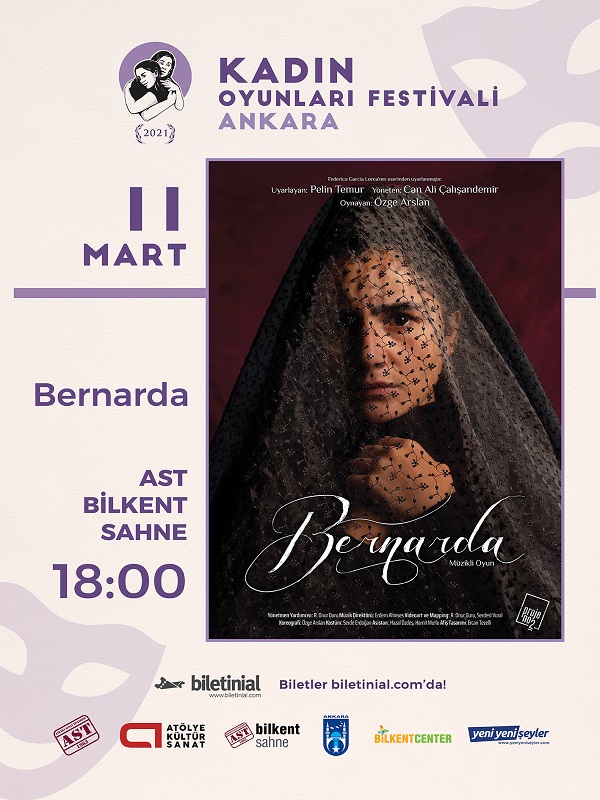 Bernarda, Federico Garcia Lorca'nın yazdığı Bernarda Alba'nın Evi adlı oyundan yola çıkılarak uyarlanmış tek kişilik yeni bir tiyatro metnidir. Bernarda karakteri, ev içinde yas ilan ederek kurduğu otorite ile bildiğimiz tüm baskıcı rejimlerin küçük bir modelini oluşturur. Özge Arslan çarpıcı oyunculuğu ile otoritenin, kadın kimliğine uyguladığı cinsiyetçi ve ayrımcı baskıyı ve 5 kadını aynı anda sahnede görüyoruz. Oyun, canlı söylenen Fandangos ve Flamenko örnekleri ile seyircinin beğenisine sunuluyor.